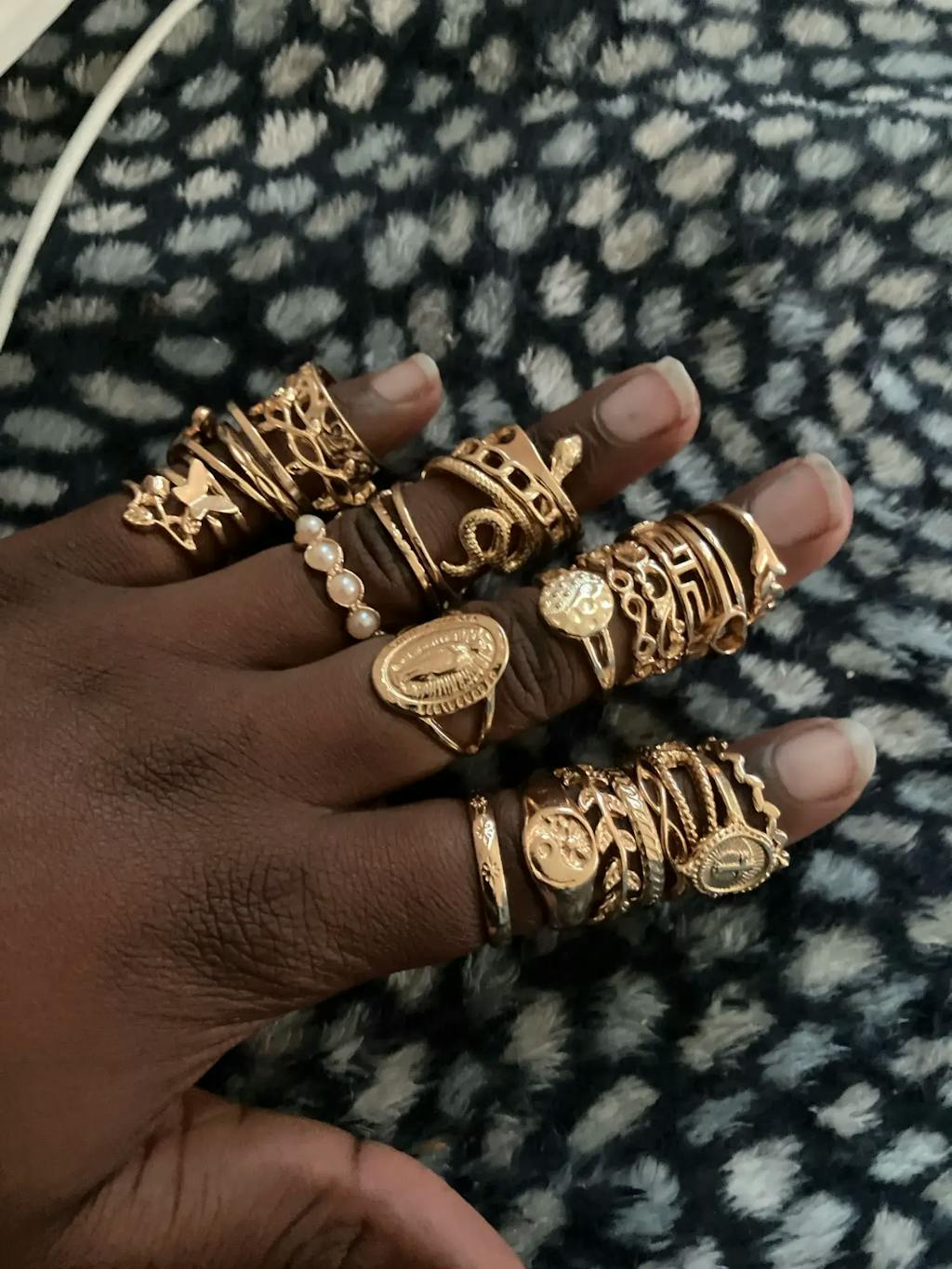 Refresh your jewelry collection with this 30-piece wholesale set of alloy finger rings for women — featuring trendy big flowers, intricate cutout skulls, spiders, animals, leaves, and snakes for bold and stylish looks.