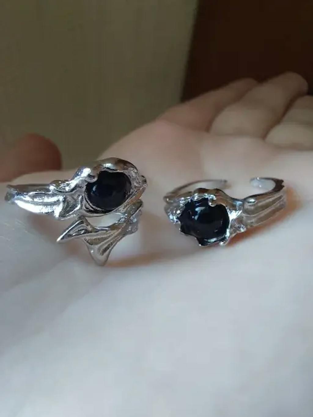 Express your dark, artistic style with this Gothic Irregular Gemstone Ring — featuring a fluid, vintage-inspired design and bold black stone centerpiece, perfect for aesthetic girls and punk fashion lovers.