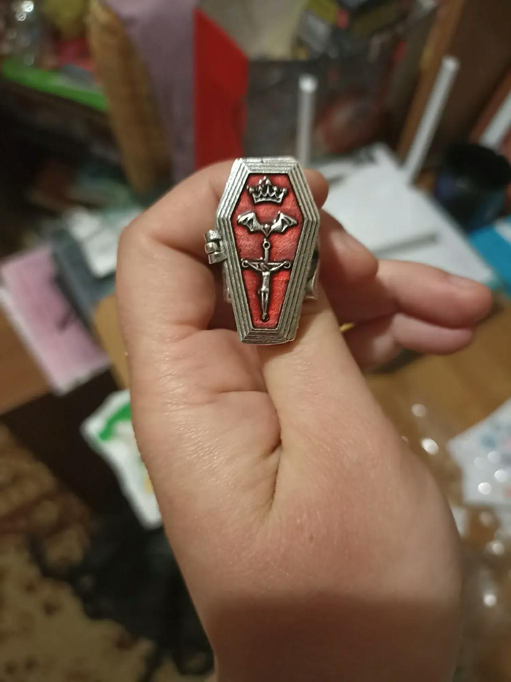 Unlock your dark style — wear the mystery with this retro vampire coffin ring today!