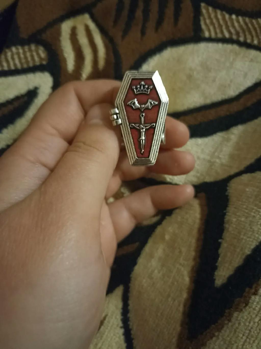 Channel dark elegance and mystery with this Fashion Retro Punk Vampire Coffin Ring — featuring a gothic cross, bat wings, and a hidden openable compartment. A perfect statement piece for lovers of vampire lore and gothic fashion.
